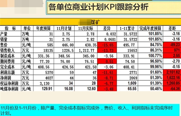 ?對指標設置紅線原則。納入指標庫,建立本礦的用于方針管理業績評價考核的指標庫,另一方面,對關鍵指標實行動態跟蹤,分析;達成對生產管理的支持。