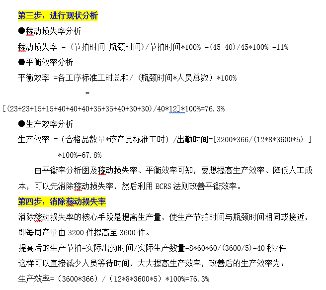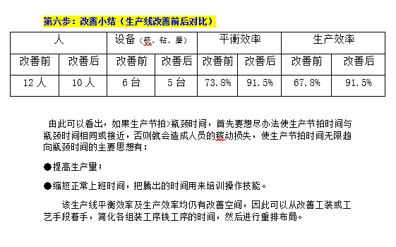 該廠某系列產(chǎn)品的加工工藝流程為銑→鉆→磨→組裝。該車間實行5天8小時工作制,每周的產(chǎn)量為3200件。該加工廠生產(chǎn)線平衡改善如下: