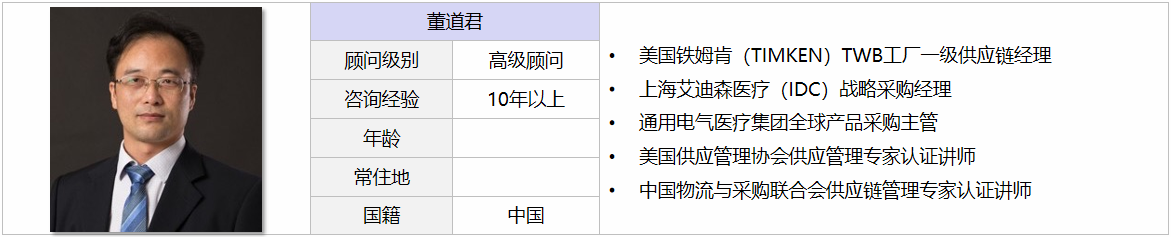 全球500強外企工作實戰經驗,職業領域涉及的行業包括醫療設備、汽車零部件、工業電氣、機械制造、國際貿易等;對企業采購與供應鏈管理各個環節都非常熟悉,為企業診斷問題并提出優化方案,有效幫助企業實現降本增效;擁有10年的采購與供應鏈培訓經驗,培訓場次超過300場,參訓學員超過10,000人。