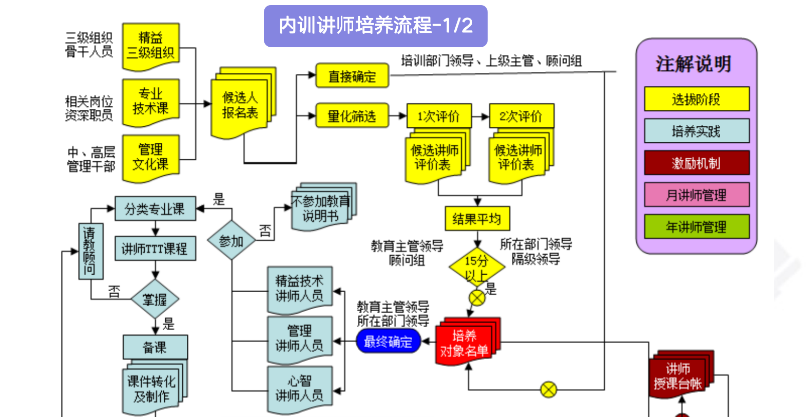 從公司角度建立內訓師培養與運營流程(包括講師選拔-講師培養實踐-講師激勵機制-月度講師管理-年度講師管理),與本期的博革咨詢式培訓同步培養貴司的種子講師。