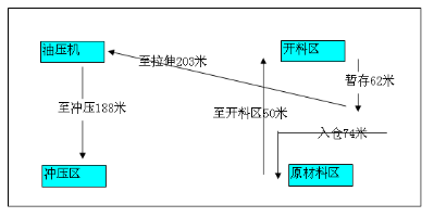 2.鈑金車間原材料至開料區(qū)50M,開料后運送至?xí)捍?區(qū)物流距離62米