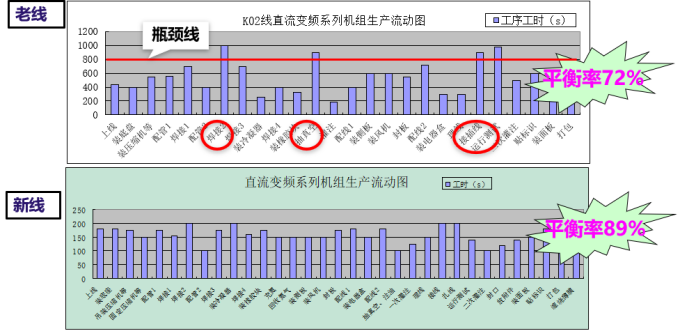 生產線的升級解決了孤島式批量生產的方式,實現了一線流生產模式,通過按節拍生產、連續流生產、培養多能工、使用自働化工裝等方式,逐步實現對原有生產線平衡調整。以確保最終實現預期目標。
