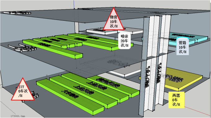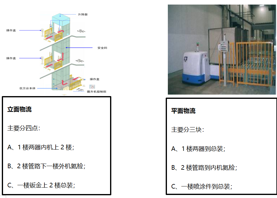 提升機:立面物流采用提升機,主要應用在成品入庫,分揀好配套物資到總裝;