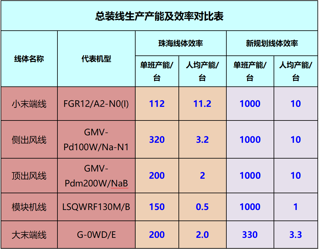新規劃及現有基地商用總裝線的產能及效率如下表: