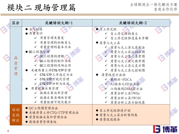 歡迎您訪問博革咨詢官網!博革咨詢是中國首家整合精益生產/六西格瑪/流程再造的咨詢公司,專注于提供 精益生產、6S現(xiàn)場管理、TPM設備管理、精益工廠布局、專業(yè)目視化、精益供應鏈、精益研發(fā)、六西格瑪管理、智能制造等綜合性問題解決方案并負責落地實施。